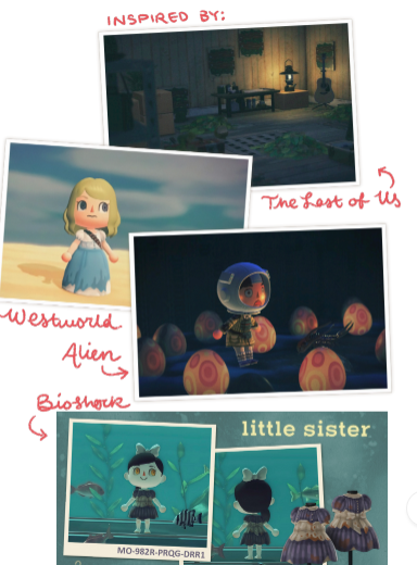 In addition to original designs, I tried to bring some of my favourite existing worlds to life in the cheery ACNH world for some entertaining juxtaposition.